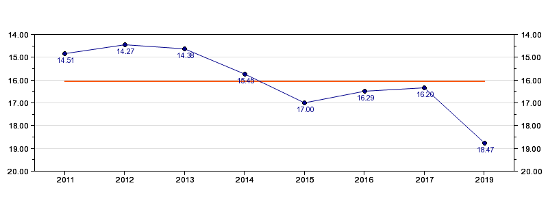 | Forrige tid | 18.47 (2019) |