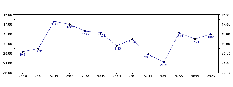 Antall deltagelser13 (i perioden 2009 - 2025)