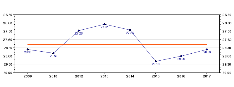 | Forrige tid | 28.36 (2017) |