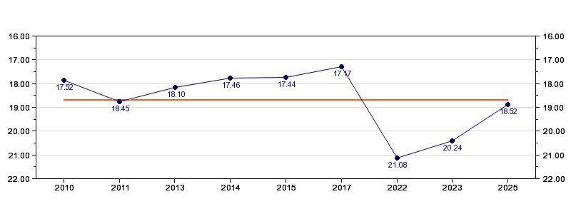 | Forrige tid | 18.52 (2025) |