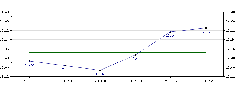 | 01.09.2010 | 12.52 | 08.09.2010 | 12.58 | 14.09.2010 | 13.04 | 20.09.2011 | 12.44 | 05.09.2012 | 12.14 | 22.09.2012 | 12.09 |