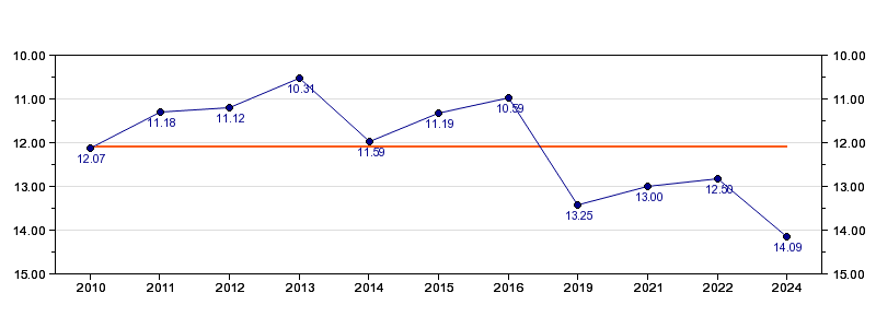 Antall deltagelser11 (i perioden 2010 - 2024)