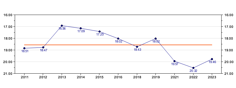 | Forrige tid | 19.46 (2023) |