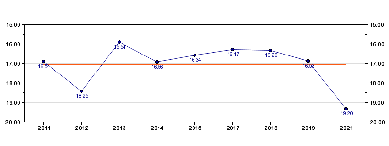 | Forrige tid | 19.20 (2021) |