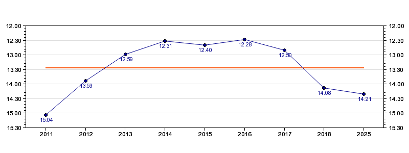 | Forrige tid | 14.21 (2025) |