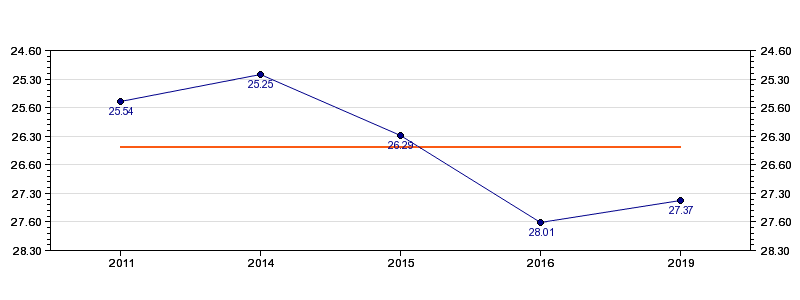 | Forrige tid | 27.37 (2019) |