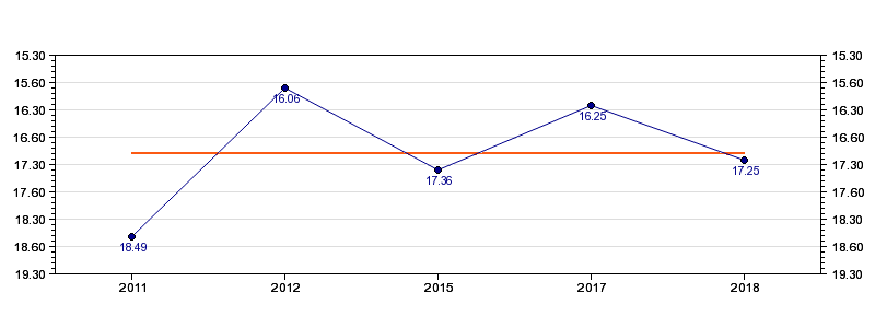 | Forrige tid | 17.25 (2018) |