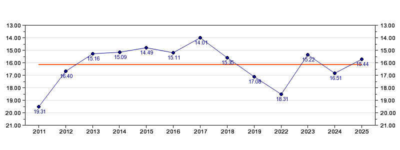 Antall deltagelser13 (i perioden 2011 - 2025)