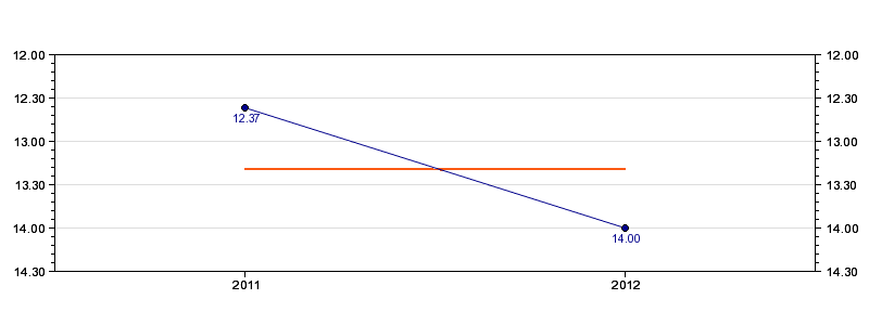 | Forrige tid | 14.00 (2012) |