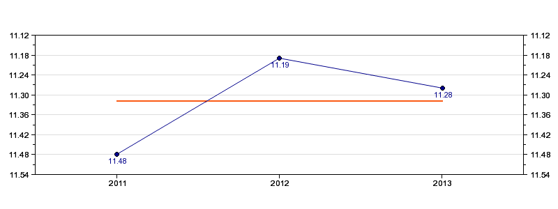 | Forrige tid | 11.28 (2013) |