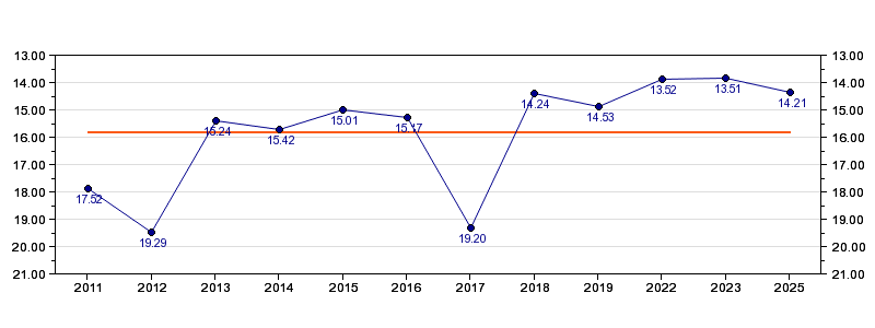 | Antall deltagelser | 12 (i perioden 2011 - 2025) |