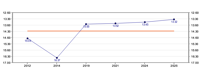 | Forrige tid | 13.32 (2025) |