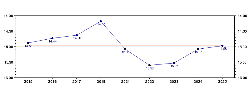 | Antall deltagelser | 9 (i perioden 2015 - 2025) |