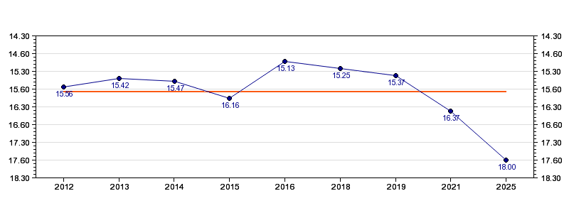 Antall deltagelser9 (i perioden 2012 - 2025)