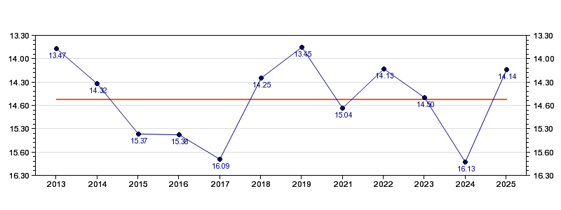 | 2025 | Kalkulator | 14:14 (1270 m/h) | 02:29 (1299 m/h, 102 %) | 06:44 (04:15, 1294 m/h, 101 %) | 12:23 (05:39, 1213 m/h, 95 %) | 14:14 (01:51, 1349 m/h, 106 %) |