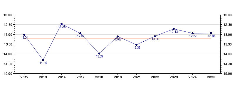 Antall deltagelser11 (i perioden 2012 - 2025)