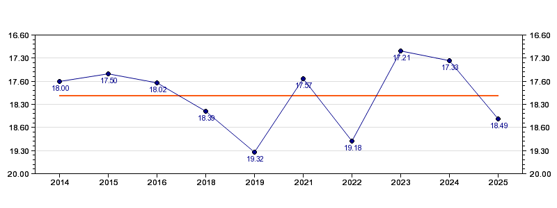 | Forrige tid | 18.49 (2025) |