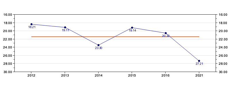 | Forrige tid | 27.21 (2021) |