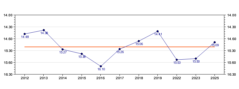 Antall deltagelser11 (i perioden 2012 - 2025)