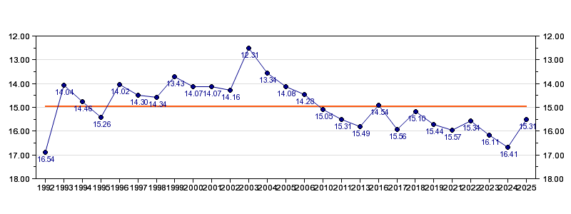 Antall deltagelser27 (i perioden 1992 - 2025)