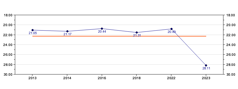 2023Kalkulator28:11 (641 m/h)03:53 (831 m/h, 129 %)12:07 (08:14, 668 m/h, 104 %)24:29 (12:22, 554 m/h, 86 %)28:11 (03:42, 674 m/h, 105 %)