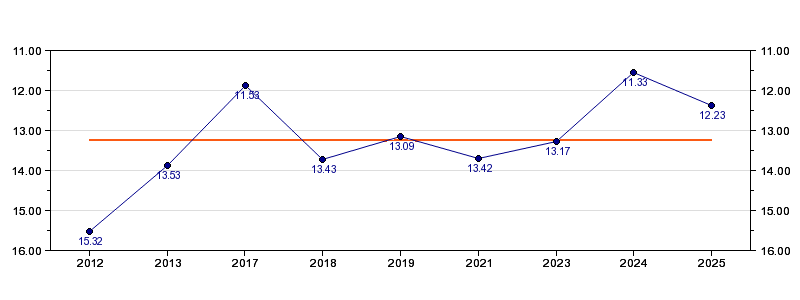 | Antall deltagelser | 9 (i perioden 2012 - 2025) |