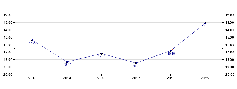| Forrige tid | 13.08 (2022) |