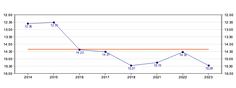 | Forrige tid | 15.28 (2023) |