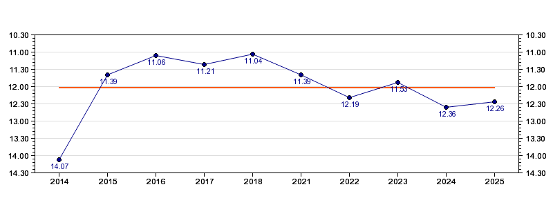 | Antall deltagelser | 10 (i perioden 2014 - 2025) |