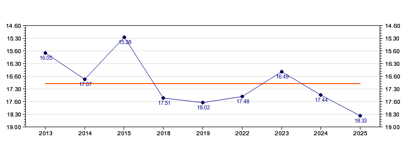 | Antall deltagelser | 9 (i perioden 2013 - 2025) |
