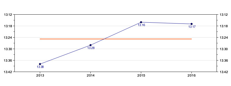 | Forrige tid | 13.17 (2016) |