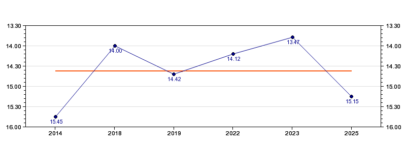 | Antall deltagelser | 6 (i perioden 2014 - 2025) |