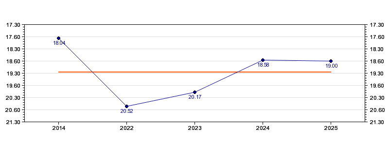 | Antall deltagelser | 5 (i perioden 2014 - 2025) |