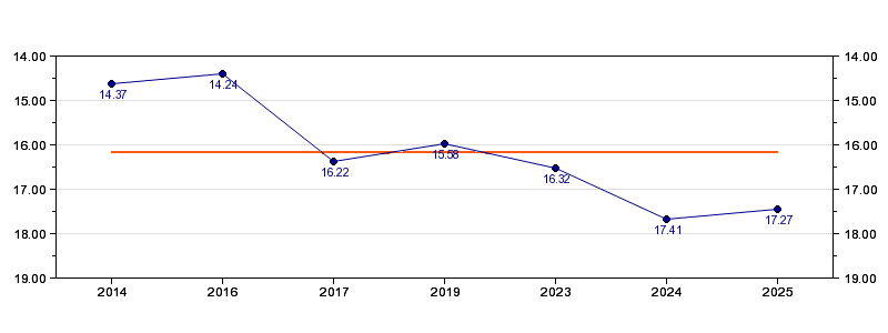 | Antall deltagelser | 7 (i perioden 2014 - 2025) |