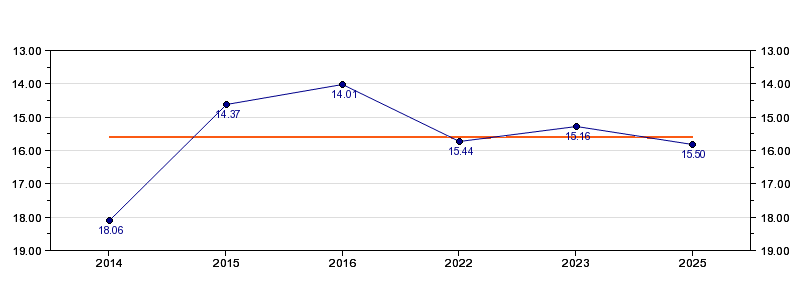 Antall deltagelser6 (i perioden 2014 - 2025)