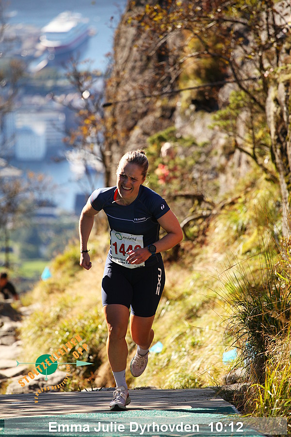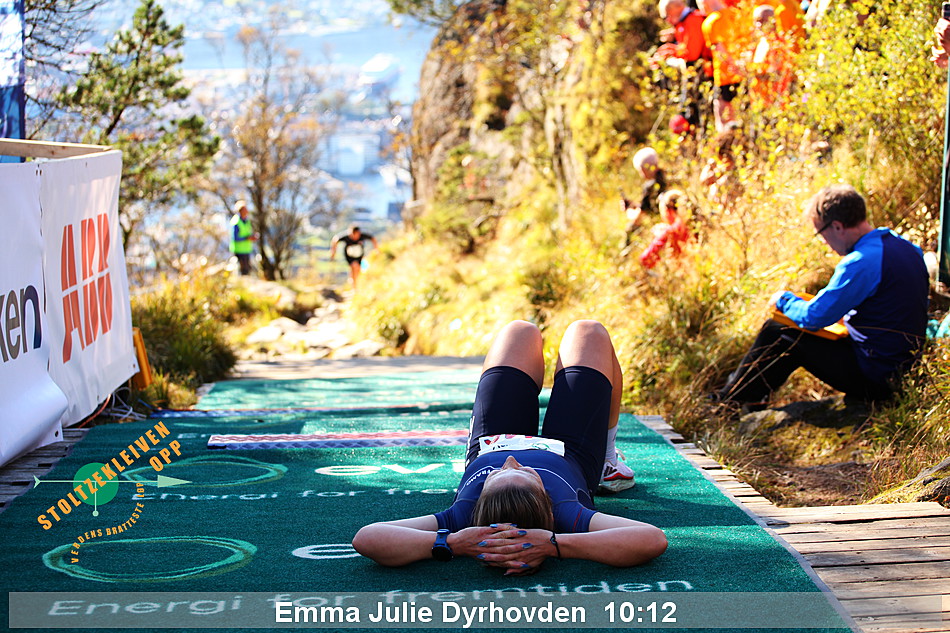 Da Thorbjørn Ludvigsen satte rekord på 7.54 i 2016 hadde han serien 95-99-95-115 og en gjennomsnittlig vertikal hastighet på 2286 meter/time. Kristin Størmer Steira hadde serien 107-96-95-107 da hun satte damerekord på 9:35 i 2013 med en gjennomsnittlig vertikal hastighet på 1884 meter/time. Til sammenligning hadde verdensrekordløpene på en vertikal kilometer (per 1/8/2014) hastighet på henholdsvis 1967 meter/time og 1630 meter/time - men da ble det altså løpt mer enn 3 ganger så langt.