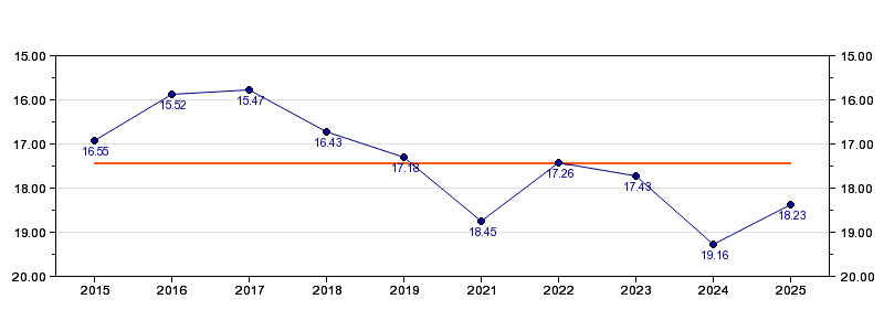 Antall deltagelser10 (i perioden 2015 - 2025)