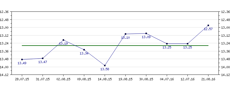 | 30.08.2015 | 13.09 | 04.07.2016 | 13.25 | 12.07.2016 | 13.25 | 21.08.2016 | 12.57 |