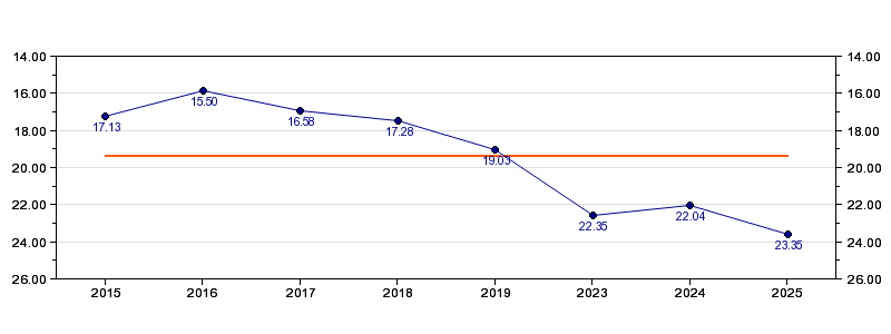 | Antall deltagelser | 8 (i perioden 2015 - 2025) |