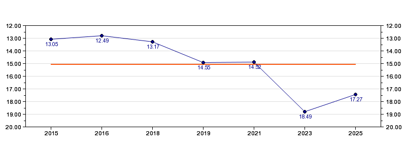 | Forrige tid | 17.27 (2025) |