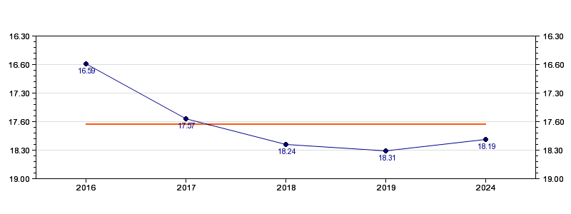 | Forrige tid | 18.19 (2024) |