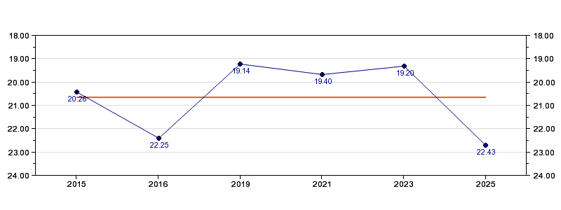 | Antall deltagelser | 6 (i perioden 2015 - 2025) |