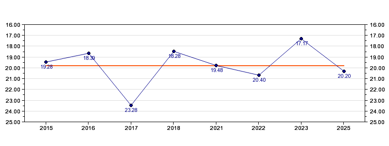 | Forrige tid | 20.20 (2025) |