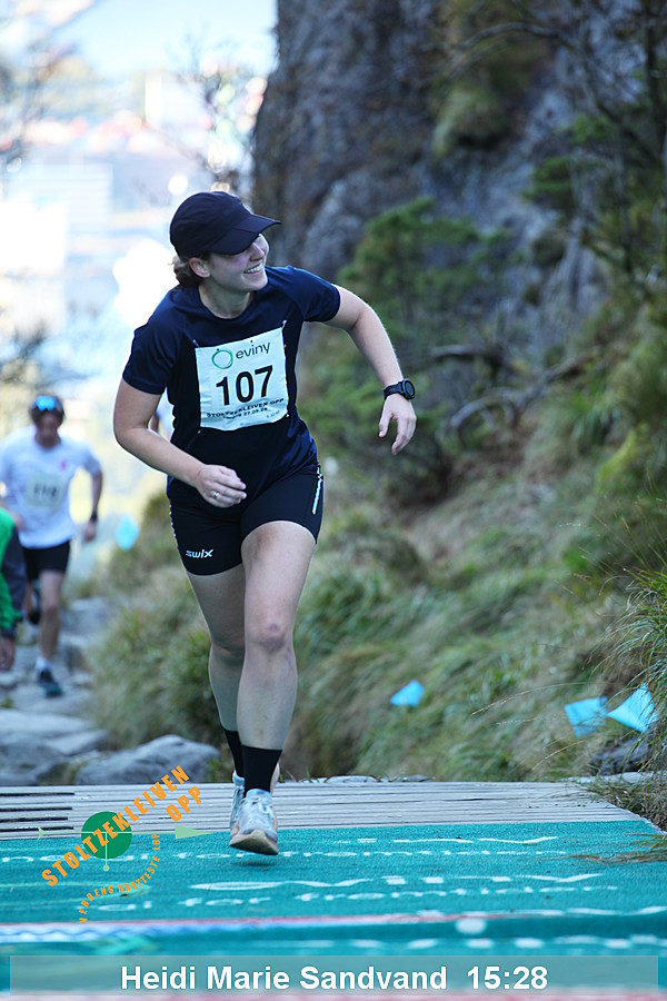 Da Thorbjørn Ludvigsen satte rekord på 7.54 i 2016 hadde han serien 95-99-95-115 og en gjennomsnittlig vertikal hastighet på 2286 meter/time. Kristin Størmer Steira hadde serien 107-96-95-107 da hun satte damerekord på 9:35 i 2013 med en gjennomsnittlig vertikal hastighet på 1884 meter/time. Til sammenligning hadde verdensrekordløpene på en vertikal kilometer (per 1/8/2014) hastighet på henholdsvis 1967 meter/time og 1630 meter/time - men da ble det altså løpt mer enn 3 ganger så langt.