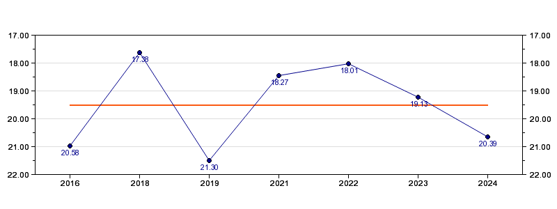 | Forrige tid | 20.39 (2024) |