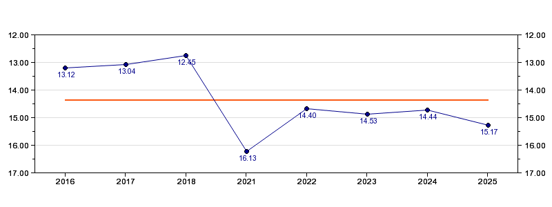 | Forrige tid | 15.17 (2025) |