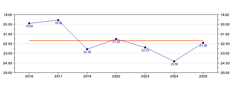 Antall deltagelser7 (i perioden 2016 - 2025)