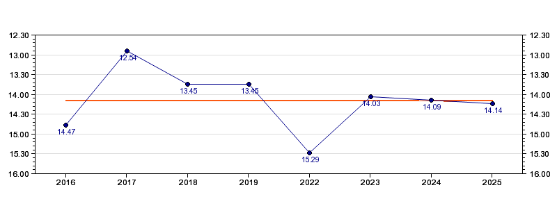 | 2025 | Kalkulator | 14:14 (1270 m/h) | 02:30 (1291 m/h, 101 %) | 06:56 (04:26, 1241 m/h, 97 %) | 12:28 (05:32, 1239 m/h, 97 %) | 14:14 (01:46, 1412 m/h, 111 %) |