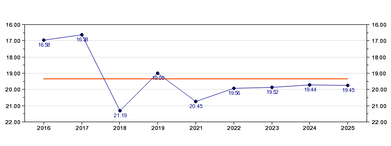 | Forrige tid | 19.45 (2025) |