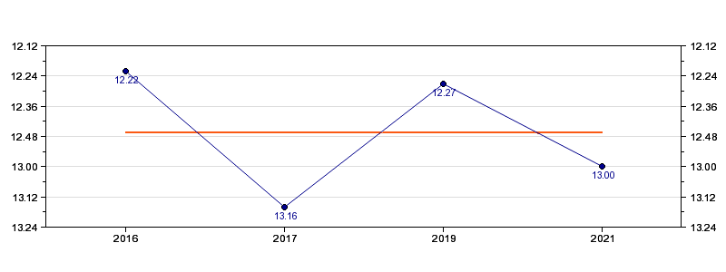 | Forrige tid | 13.00 (2021) |